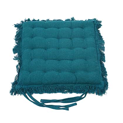 Set of 2 100% Cotton Cover and Filled Chair Pads with Fringes in Teal Size 40x40x3cm