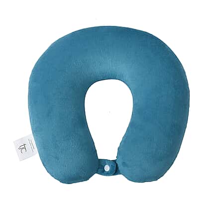 Stylish and Comfortable Memory Foam Ergonomic Neck Pillow with Snap Closure - Teal