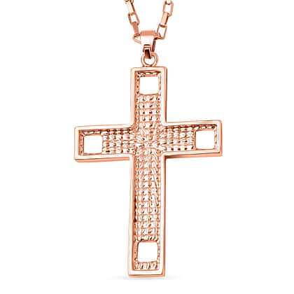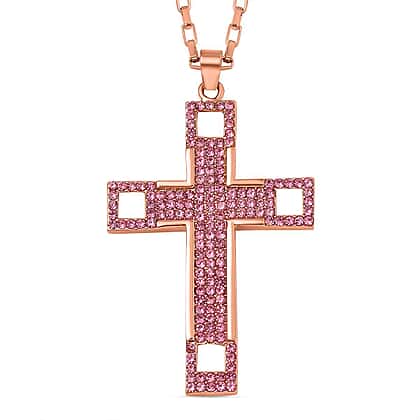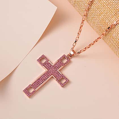 Pink Austrian Crystal Cross Necklace (Size - 24) in Rose Gold Tone