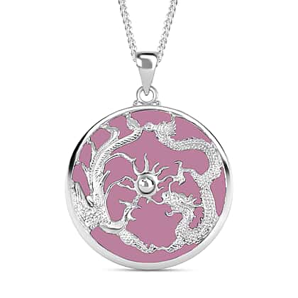 Pink Jade Dragon Pendant with Chain (Size 20) in Platinum and Rhodium Overlay Sterling Silver