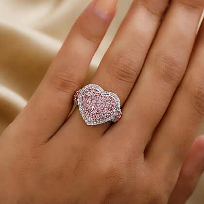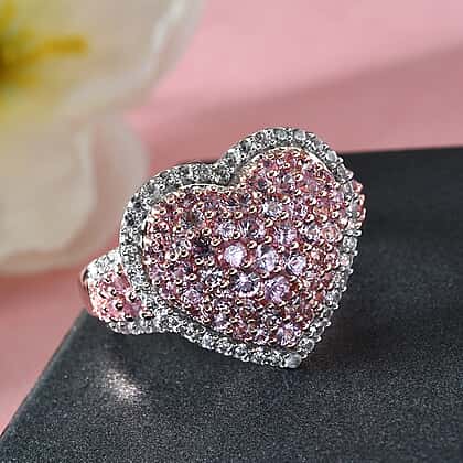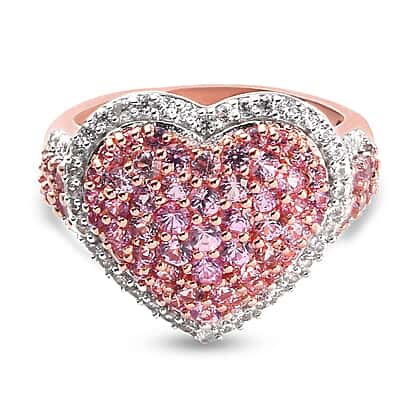 Pink Sapphire Heart Cluster Ring in Rose Gold Overlay Sterling Silver 3.16 Ct.