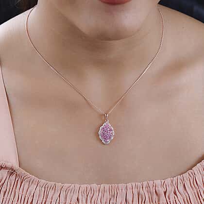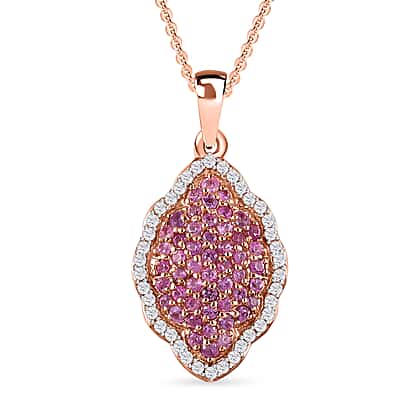 Pink Sapphire & Natural Zircon Pendant with Chain (Size-20) in 18K Rose Gold Vermeil Plated Sterling Silver 1.37 Ct.