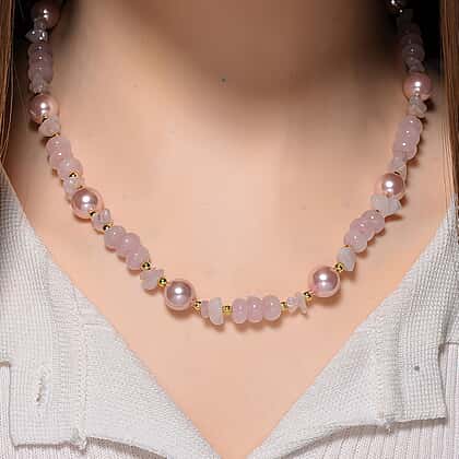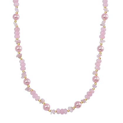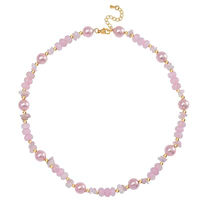 Pink Shell Pearl and Rose Quartz Beads & Chips Necklace (Size 18-2) in Yellow Gold Tone 170.00 Ct.