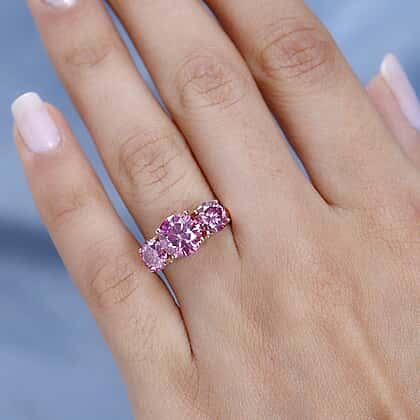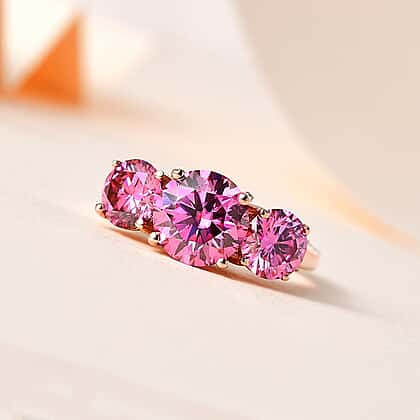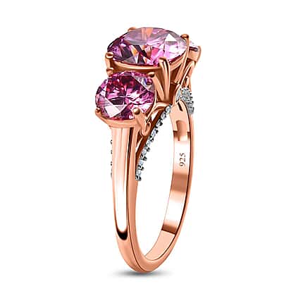 Pink & White Moissanite Ring in 18K Rose Gold Vermeil Plated Sterling Silver 3.62 Ct.