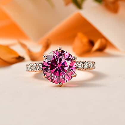 Pink & White Moissanite Ring in 18K Rose Gold Vermeil Plated Sterling Silver 3.73 Ct.