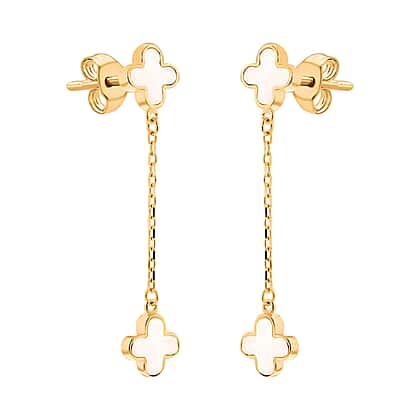 Hatton Garden Closeout - 9K Yellow Gold Mother of Pearl Petal Drop Earrings