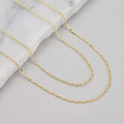 Set of 2 Sterling Silver Chains Rolo and Anchor (Size 18) - Yellow Gold Overlay