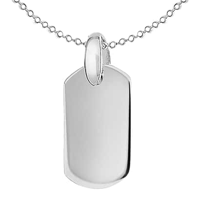 Dog Tag Pendant with Chain in Sterling Silver 18 Inches