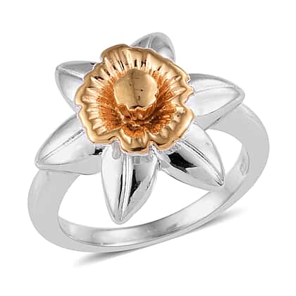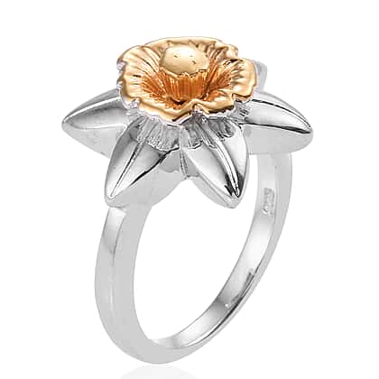 High Finish Daffodil Flower Ring in Platinum and Gold Plated Sterling Silver 5.90 grams