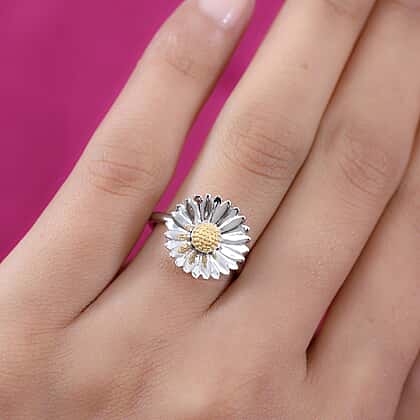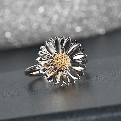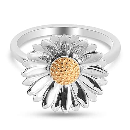 Daisy April Birth Flower Ring in Platinum and Gold Plated Silver