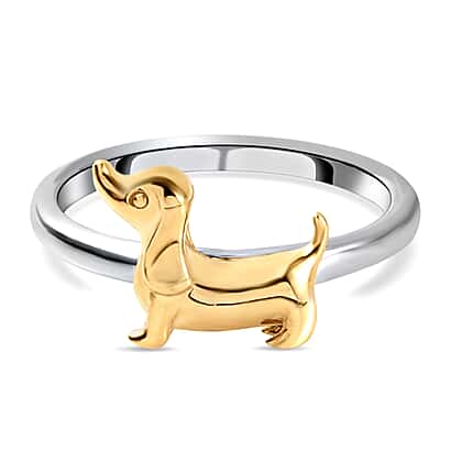 Dachshund Dog Ring in Platinum and Gold Plated Sterling Silver