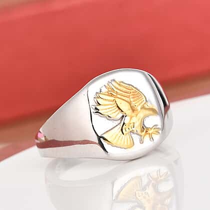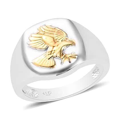 Platinum and Yellow Gold Overlay Sterling Silver Eagle Signet Ring, Silver wt. 5.00 Gms