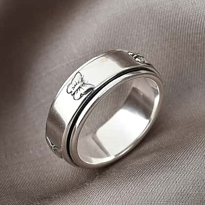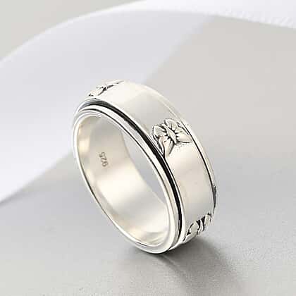 Butterfly Embossed Spinner Band Ring in Sterling Silver