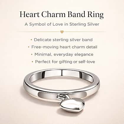 - This sterling silver ring with luxurious platinum plating features a heart-shaped charm that moves with the finger’s movement, adding a playful charm to the design.