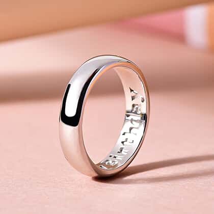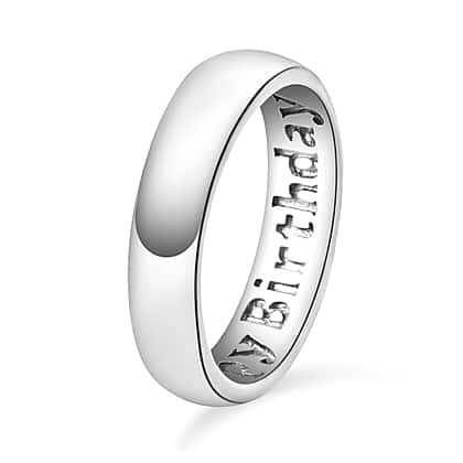 Platinum Overlay Sterling Silver Happy Birthday Engraved Band Ring