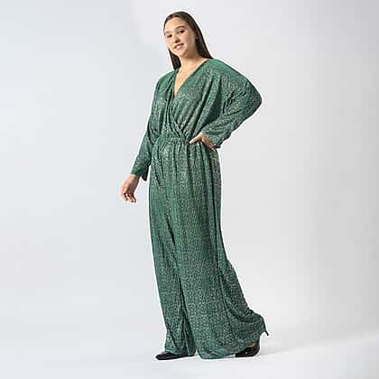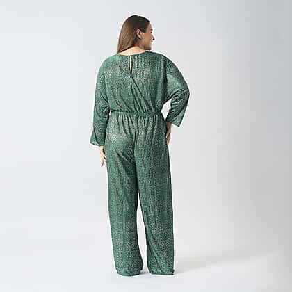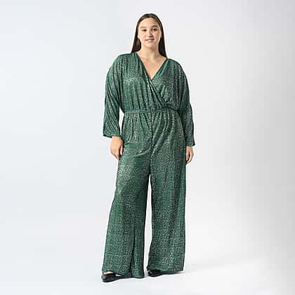 Pleated Jumpsuit with Metallic Detail & Elasticated Waist (Size S) - Green
