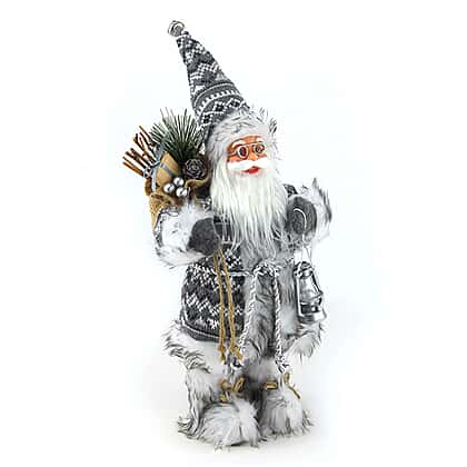 Enjoy this Christmas with this all-new Plush Father Christmas in a Nordic outfit. Displaying amazing details, this Santa figurine has a sack on its shoulder with pine leaves and silver colour ornaments, a hat and a coat, and a lantern in another hand. This Santa figurine is a perfect choice to use for Christmas party decorations. Made of durable material, this Santa Claus figurine can be used again next year. The Nordic outfit offers a unique charm to this figurine.