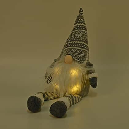 Plush Gnome With 4 Warm White LED Lighted Christmas (3xAA Battery, Not Incl.) - Grey