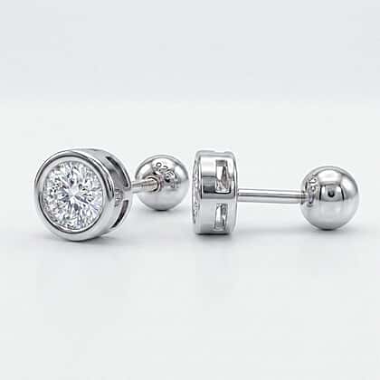 LUXURIANT 0.5 Ct. Lab Grown Diamond Solitaire Stud Earring with Ball Screw Push Back in Rhodium Overlay Sterling Silver