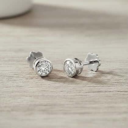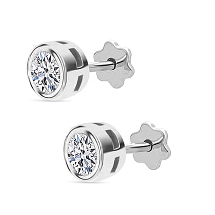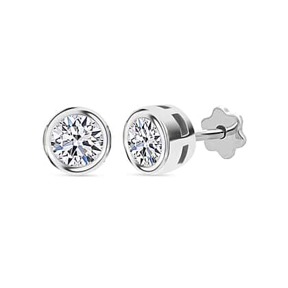 Luxuriant SI-GH Lab Grown Diamond Screw Back Earring in Rhodium Overlay Sterling Silver 1.02 Ct.