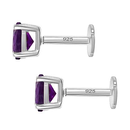 African Amethyst Earring with Screw Back in Rhodium Overlay Sterling Silver