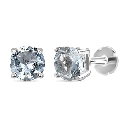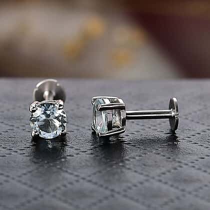 Poke Free Aquamarine (5mm) March Birthstone Solitaire Stud Earring in Rhodium Overlay Sterling Silver