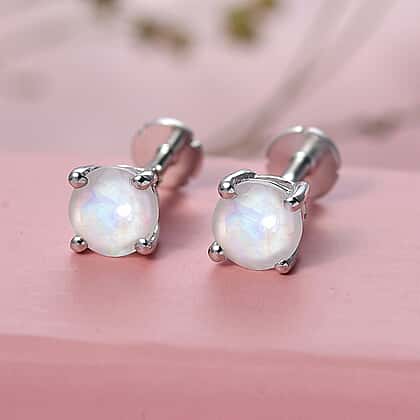 Discover a charm of celestial beauty with these solitaire stud earrings, featuring rainbow moonstone. Moonstone is a June birthstone, known for its ethereal glow and calming energy. Crafted in rhodium overlay on 925 sterling silver, ensures durability and offers a mirror-like shine. Lightweight yet hypoallergenic, the piece offers comfort and safety to sensitive skin. Finished with a secure screw back clasp for comfort fit and secure wear. Whether worn daily or for special occasions, their subtle yet captivating appearance adds a unique shine to your style.
