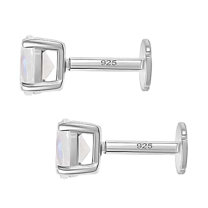 Rainbow Moonstone Earring with Screw Back in Rhodium Overlay Sterling Silver 1.04 Ct.