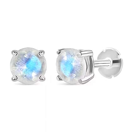 Poke Free Moonstone (5mm) June Birthstone Stud Earring in Rhodium Overlay Sterling Silver