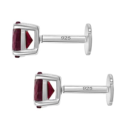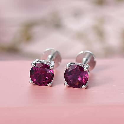 Poke Free Garnet (5mm) January Birthstone Solitaire Stud Earring in Rhodium Overlay Sterling Silver