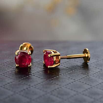 African Ruby Earring with Screw Back in 18K Vermeil Yellow Gold Plated Sterling Silver 1.46 Ct.