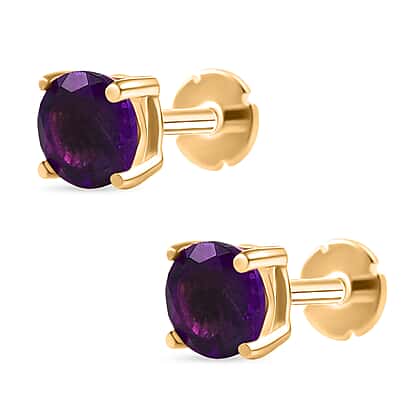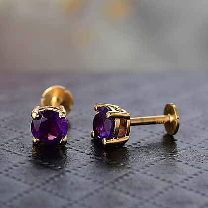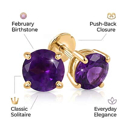 Poke Free Amethyst (5mm) February Birthstone Solitaire Stud Earring in 18K Vermeil Yellow Gold Plated Sterling Silver