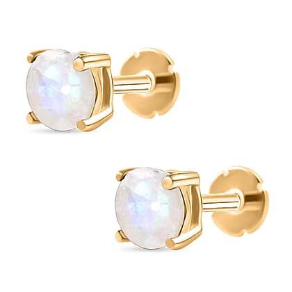 Rainbow Moonstone Earring with Screw Back in 18K Vermeil Yellow Gold Plated Sterling Silver 1.04 Ct.