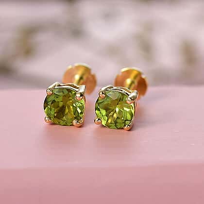 Peridot Earring with Screw Back in 18K Vermeil Yellow Gold Plated Sterling Silver 1.06 Ct.