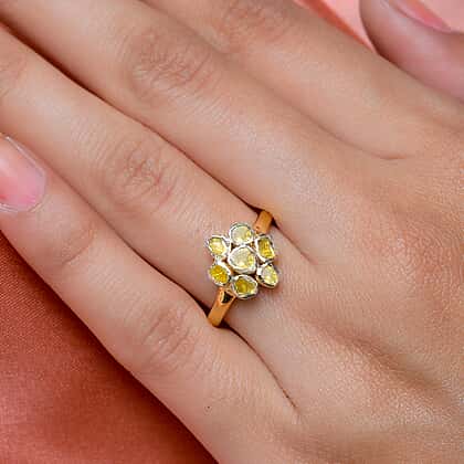 Polki Yellow Diamond Floral Ring in Yellow Gold Plated Sterling Silver 0.50 Ct.