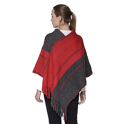 Stripe Pattern Poncho in Red and Dark Grey (54x70cm)