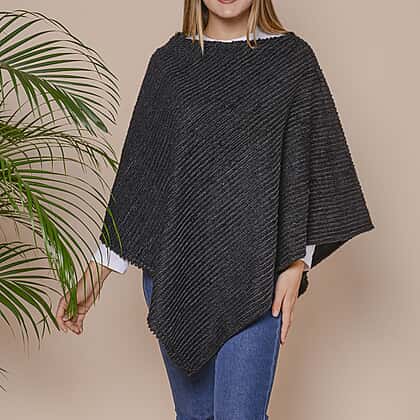 Striped Design Soft Faux Fur Poncho (Size 100x84 cm) - Black