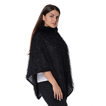 - Classy fluffy poncho in stunning black shade