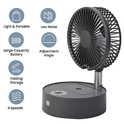 Portable and Lightweight Foldable Fan with Four Wind Speeds, LED Light And Mist Sprayer (Includes Remote Control And USB Cable) - Grey