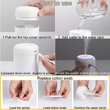 - The portable white humidifier has colour changing illumination