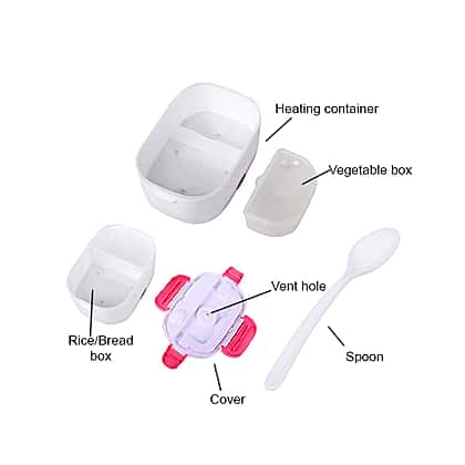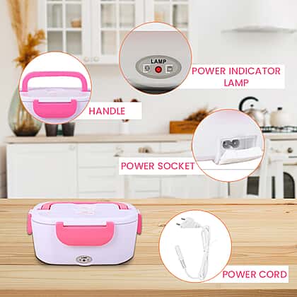 Multifunctional Portable Electric Heating Lunch Box - White and Pink