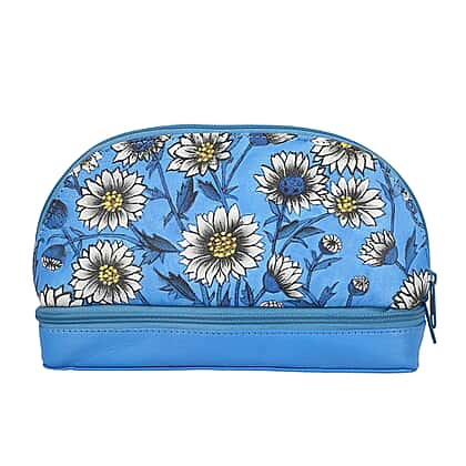 Portable Hand Printed Daisy Theme Jewellery Organiser (Size 20x15x8Cm) - Blue