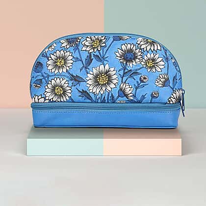 Portable Hand Printed Daisy Theme Jewellery Organiser Jewellery Storage for Necklace, Earrings, Bracelets, Watches and Accessories for Women's and Girl's- Blue and White