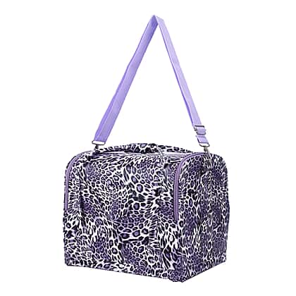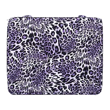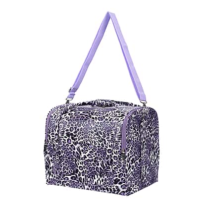 Portable Jewellery and Cosmetic Organiser Leopard Pattern with Zipper Closure and Detachable Shoulder Strap (Size-30x24x26Cm) - Purple