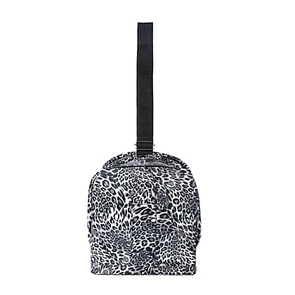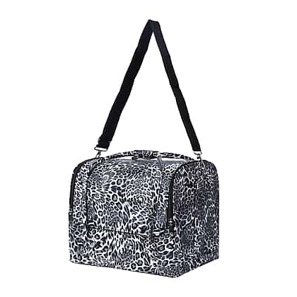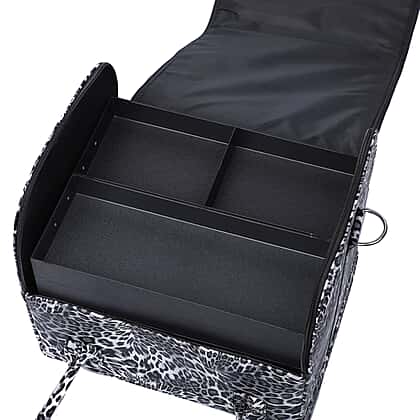 Portable Jewellery and Cosmetic Organiser Leopard Pattern with Zipper Closure and Detachable Shoulder Strap - Black