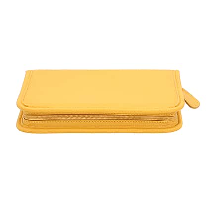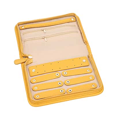 Portable Lichee Pattern Jewellery Organiser (Includes 1 Ring Band, 2 Zip Pockets, 1 Removable Earring Panel & 6 Necklace Clips) (Size 21x15x4cm) - Mustard