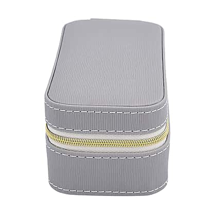Portable Mini Travel Jewellery Box with Anti Tarnish Lining and Zipper Closure - Grey
