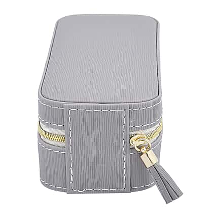 Portable Mini Travel Jewellery Box with Anti Tarnish Lining and Zipper Closure (Size 15x7x5 Cm) - Grey