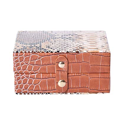 Portable Snake Skin Pattern Jewellery Box with Button Closure (Size 12x9x6Cm) - Brown