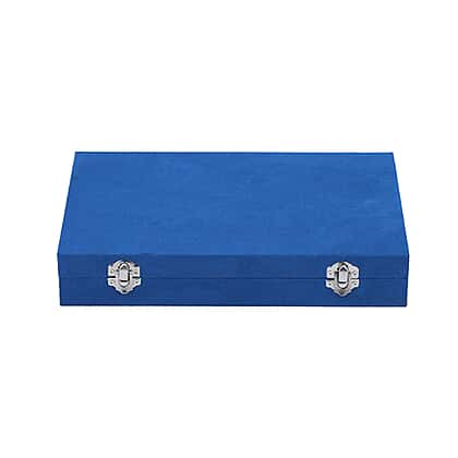 Portable Velvet Jewellery Box with Lock and Anti Tarnish Lining (Size:29x18x5 Cm) - Blue